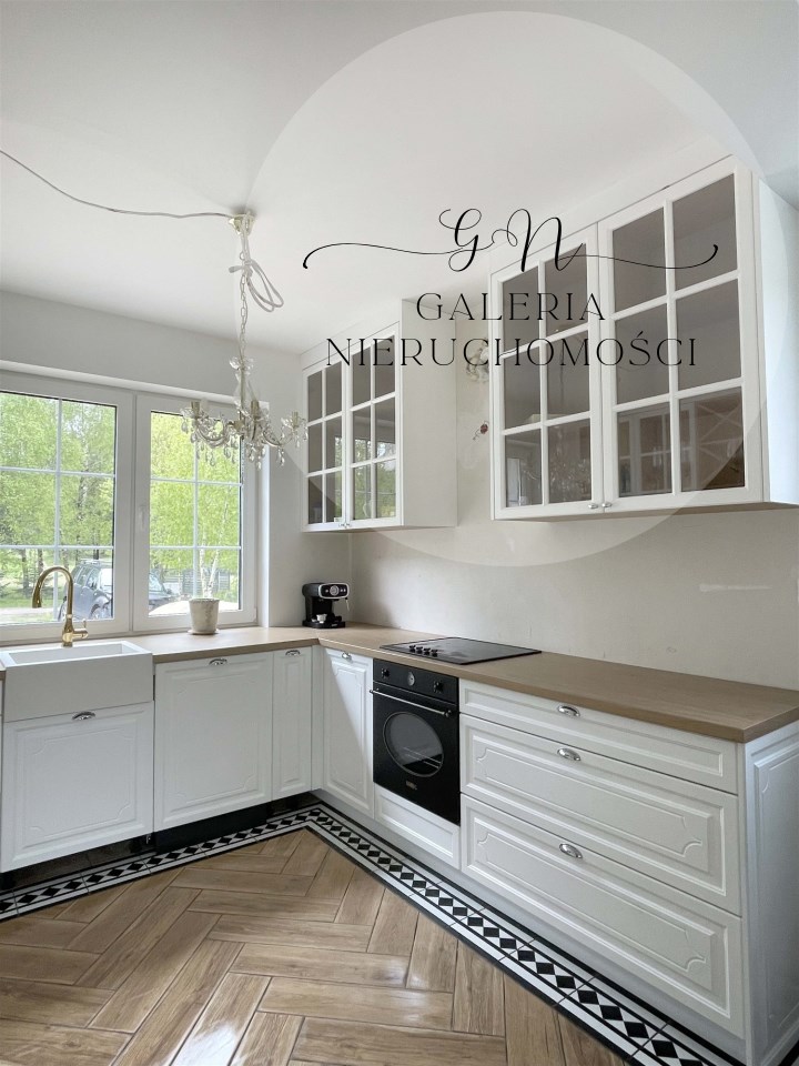 Meble kuchenne wykonane wg indywidualnego projektu pod wymiar przez renomowanego stolarza. Wszystkie sprzęty AGD są nowe. Na podłogach znajduje się drewniany parkiet oraz gres szkliwiony.