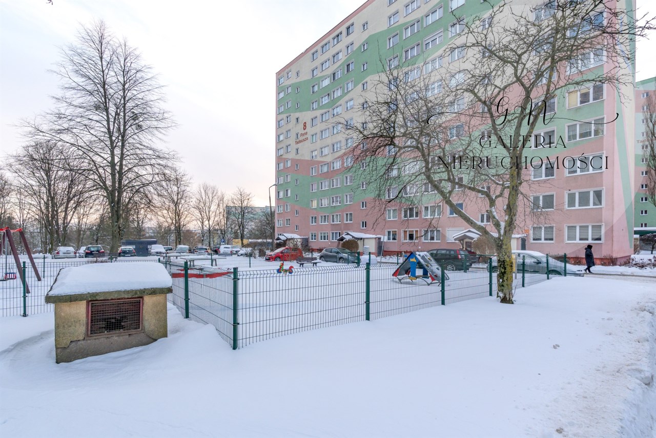 Blok położony przy ulicy PANA TADEUSZA 8 na olsztyńskim osiedlu POJEZIERZE. Ocieplony, z wyremontowanymi klatkami schodowymi. To niepisane Centrum miasta, gdzie cała infrastruktura funkcjonuje na najwyższym poziomie. To jedno z najpopularniejszych osiedli na mapie Olsztyna. Znajduje się tu całe szeroko pojęte zaplecze handlowo-usługowe: sklepy, szpitale ( w bezpośrednim sąsiedztwie Szpital Dziecięcy oraz Szpital Wojewódzki), przychodnie, apteki, szkoły, przedszkola itd. wszystko w zasięgu ręki, bez konieczności uruchamiania samochodu. Bliskość głównych arterii, takich jak Dworcowa czy Piłsudskiego, zapewnia szybki dostęp do Centrum oraz wszystkich innych części miasta. Dzięki licznym przystankom autobusowym (12 linii autobusowych plus jedna nocna) i tramwajowym podróżowanie z tego miejsca staje się niezwykle proste. W niedalekiej odległości znajduje się Park Kusocińskiego i Park Centralny. Pięknie zagospodarowane miejsca na spacer, relaks, jazdę na rowerze i aktywność na świeżym powietrzu. Po sąsiedzku znajduje się również nowo wybudowana hala widowiskowo-sportowa -Urania.