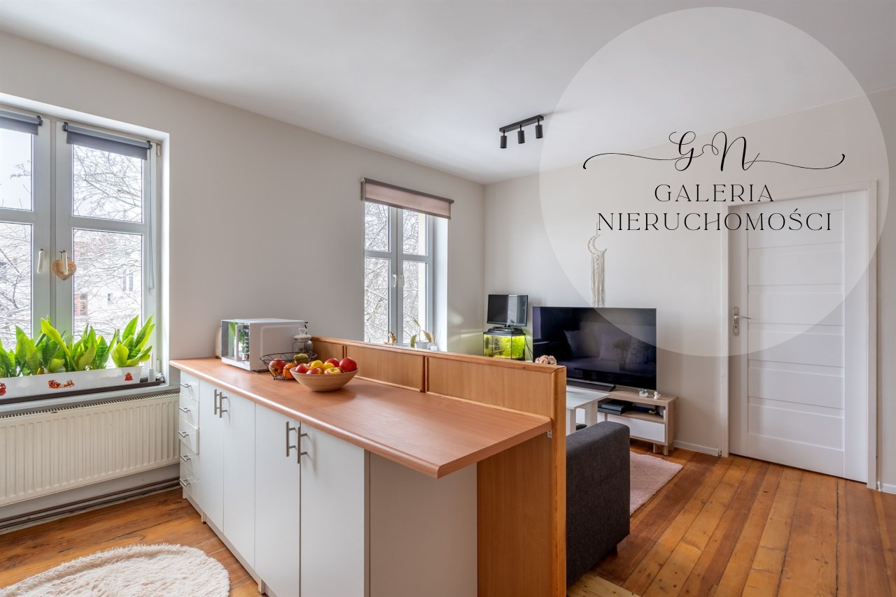 Mieszkanko posiada fajny klimat i nietuzinkową przestrzeń. Z okien widok na ładnie zagospodarowane podwórko. Wykonano w nim gruntowny remont. Wymieniono całą instalację elektryczną i wodno-kanalizacyjną, okna, drzwi zewnętrzne i wewnętrzne. W łazience glazura i terakota. Na podłodze piękna, zadbana deska sosnowa. Ściany wyszpachlowane i pomalowane.