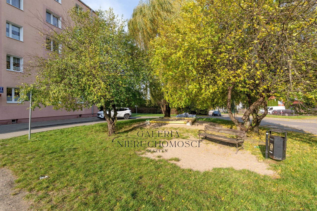 Przed budynkiem znajduje się plac zabaw, parking z dużą ilością miejsc postojowych oraz dużo zieleni. Za blokiem znajduje się otwarty teren zielony, należący do naszego bloku, pięknie zagospodarowany, gdzie można np. spędzać czas wolny lub suszyć ubrania, a w okolicy często pojawiają się ogłoszenia o sprzedaży garażu lub ogródków działkowych, które znajdują się w niedalekiej odległości.