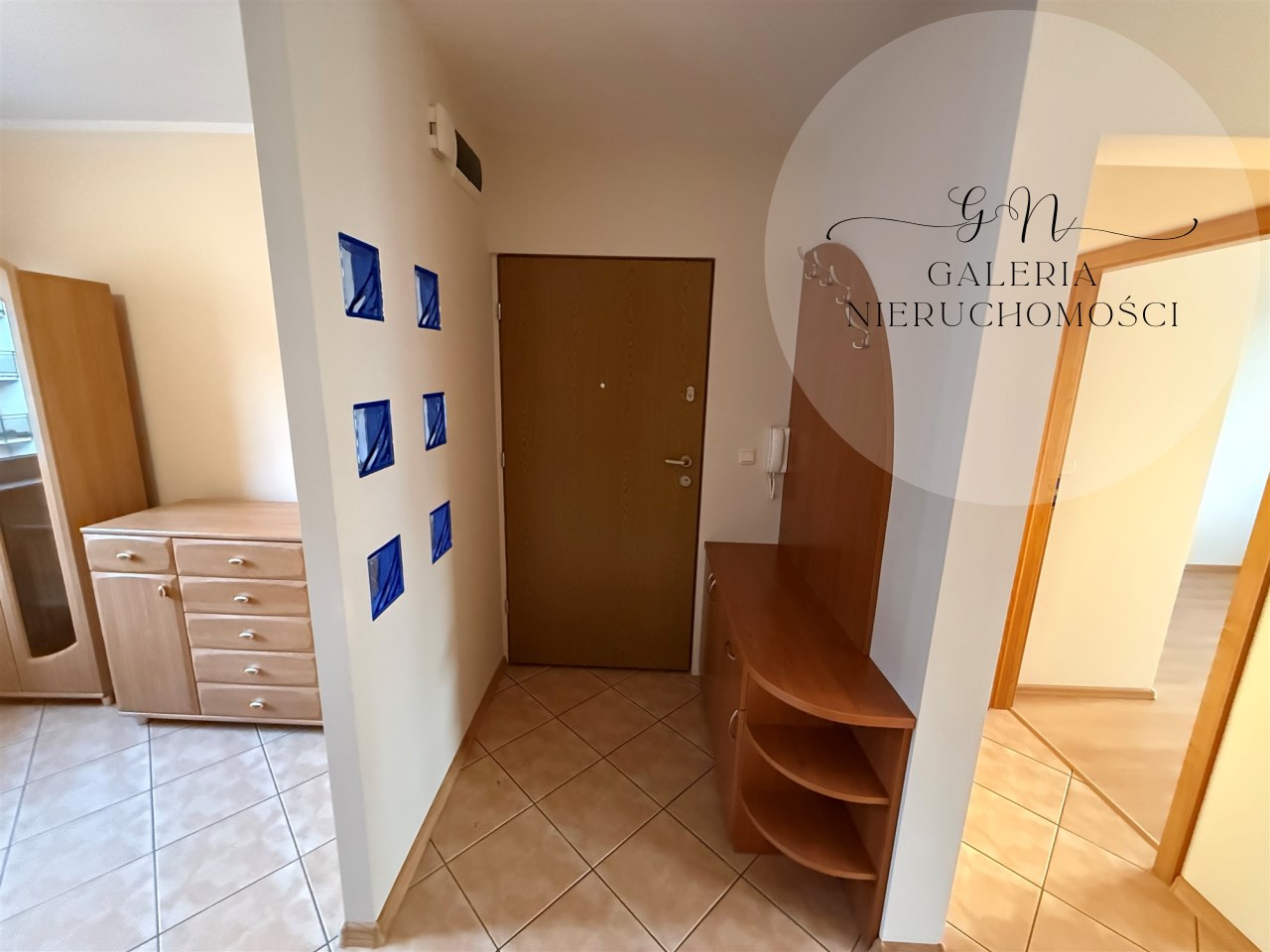 1.Przedpokój z dużą szafą wnękową oraz wieszakiem i komodą, z którego znajduje się wejście do łazienki oraz kuchni z jadalnią (pierwotnie była oddzielna kuchnia oraz sypialnia).