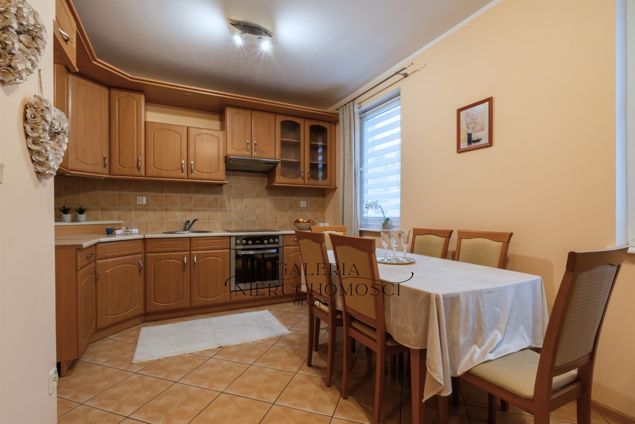 2. Kuchnia zabudowana meblami pod wymiar pozostaje wraz ze sprzętem agd, stołem z krzesłami, komodą witryną.